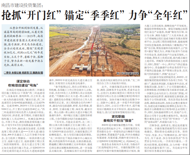 从整合升级到协同发展,从谋篇布局到精谨细致,从奠定根基到战略擘画……2023年,南昌市云博手机官方网站_云博(中国)集团立足新时代浪潮,张弓满弦,开足马力抓建设,全力以赴促成效,围绕“实现营收38亿元、利润4.6亿元”的年度目标,立足于早、着眼于快、落脚于实,努力在新一轮发展中抢占先机、赢得主动。 在南昌市绕城高速公路西二环建设项目施工现场(以下简称“西二环高速项目”),设备高耸、轰鸣阵阵,目之所及,是一派火热的建设场景。“截至目前,西二环高速项目全线442座涵洞通道,已完成376座,完成率85%。2023年1月份完成投资9330万元,开工累计完成投资40亿元。”西二环高速项目相关负责人仇新成介绍说,为抢时间、拼进度,春节期间,市建投集团组织施工人员近500人,机械设备200余台,不停工作业,满负荷推进现场施工建设,计划今年4月份全线路基基本成型。 争分夺秒,跑出建设加速度。在洪腾高架工程(洪都大道——天祥大道)建设场地,800多名建设工人以只争朝夕的姿态,全力抢抓工期建设。一标段洪都大道立交、高新大道立交、地面道路工程以及二标段预制梁场、昌东大道立交等工程正如火如荼进行施工作业,计划2023年10月底完成项目起点至昌东大道地面道路通车,2023年年底完成昌东大道互通立交建设、实现项目主线高架全线通车。 “春节假期过后,我们立即增加人员和机械,各项施工工作已经全面步入正轨,目前,共有110名工人及管理人员正在抢抓进度。”丹霞路(沿江北大道-青山湖北大道)道路及综合管廊工程项目办工作人员杨锋告诉记者,该工程线路全长约1.85千米,建设内容包括道路、桥梁、综合管廊、排水、照明、交通设施工程、绿化等。截至目前,青山北路-青山湖北大道北半幅已具备通车条件,南半幅正在施工道路及桥梁工程,力争丹霞路全线2月底建成通车。 干在实处,方能走在前列。北二环二期(公铁大桥合建段立交互通工程)、北二环下庄湖桥(秀先路至金山互通段)项目作为2023年新启动项目,市建投集团已开始精练强兵,致力为项目建设提质增效。“北二环项目位于南昌市城市中心城区北侧,向西连接西外环高速,东接昌樟高速,跨越赣江横向衔接赣江北岸和南岸,建成后将完善区域整体路网结构,进一步加强昌北城北部、昌南城东部片区的紧密衔接,促进沿线区域经济社会发展。”北二环项目办工作人员赵琦介绍说。 此外,市建投集团还将充分发挥规划、测绘、园林等多专业优势,形成专业合力,总结《九龙湖区域竖向工程优化专项规划》《马咀山生态公园概念规划》等项目成功经验,加快市城市规划总院数字中心、创新中心建设,进一步提升科研创新驱动力。同时,立足引才聚才育才,提升规划设计勘测技术水平和层次,提高咨询决策能力,助力打造智库型规划设计院。 2023年是市建投集团整合升级、实现常态化运营的起步之年。市建投集团深入贯彻落实全市一季度经济运行精彩开局座谈会精神,贯通集团产业链,科学合理确定发展速度、发展质量,明确年度目标任务,计划2023年实现营收38亿元、利润4.6亿元。 推进各业务板块齐头并进。为推动开门红趋势延续全年红,市建投集团努力在新时代发展中做优规划勘测设计板块、做大施工总承包板块、做精房地产开发板块、做强投资管理板块等。督促市城规总院围绕打造全产业链条,构建“规划为引领、设计为主体、测绘为基石”三大技术体系,致力于将城规总院打造成为城市发展决策智库平台、全过程工程咨询服务商、基础地理空间信息集成商。指导南昌三建集团以“申特”为引领,聚焦房建和市政双提升,以“投资+建设”模式为主,积极开拓省外乃至海外市场业务。抢抓房地产行业复苏契机,小步稳跑,聚焦本土优质区域、国内重点城市土地市场,积极参与和获取招拍挂土地项目。同时,围绕“一中心,两平台”(供应链金融为中心、资金融通平台和业务投资平台)开展供应链金融、资产管理主营业务,在风险可控的前提下,积极“走出去”。 迈出新步伐促进职能优化。2023年,市建投集团把提质增效作为各项工作的“突破口”,推进改革创新,实施改革年活动,采取集团出题,各部门、子公司答题的模式,在管理体制、经营模式等方面谋求突破,进一步激发企业内在活力。优化部门职能,对集团内部岗位职责、规章制度完善更新,助推各子公司快速发展,优化各项业务办理流程,确保高效运转。加快企业整合重组步伐。加速完成市城规总院事转企各项工作,推进市公路勘察设计院等4家企业划转工作,同时,加快基础项管公司、房地产公司、置业公司等子企业整合重组步伐,推动各整合重组企业从“形似”到“形神合一”,再到“高效运转”,形成强大战斗力。 百舸争流,奋楫者先。锚定高质量发展目标,市建投集团砥砺笃行项目高标准建设,勇担使命完成既定任务,保持“自信、发奋、齐心”的精神状态,将“项目为先、实干奋进,争分夺秒拼经济”作为贯穿全年的主线,一手抓项目建设,一手抓内控管理,提质增效,全力冲刺一季度经济高质量发展开门红,为完成全年发展目标任务奠定坚实基础。